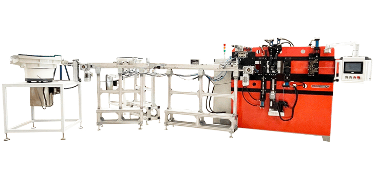 paint roller brush make machine is a wire forming equipment,which is applicable to the steel wire diameter of 5-8mm and is compatible with the function of automatic installation plastic handles. The main forming panel of the machinery making paint roller is designed as a T-shaped slots,which is a total of four rows of through T-shaped slots.All the equipment forming mechanisms are modular design. Each mould of machinery making paint roller can slide freely on the main panel according to different specifications of roller brush support, and can be fixed and positioned at any position with T-shaped nuts. Except for the bottom mold, the equipment molding mold is all wheel type structure,which can effectively avoid wire damage during wire molding. the steel wire bending is smooth and beautiful, and the molding effect is good.