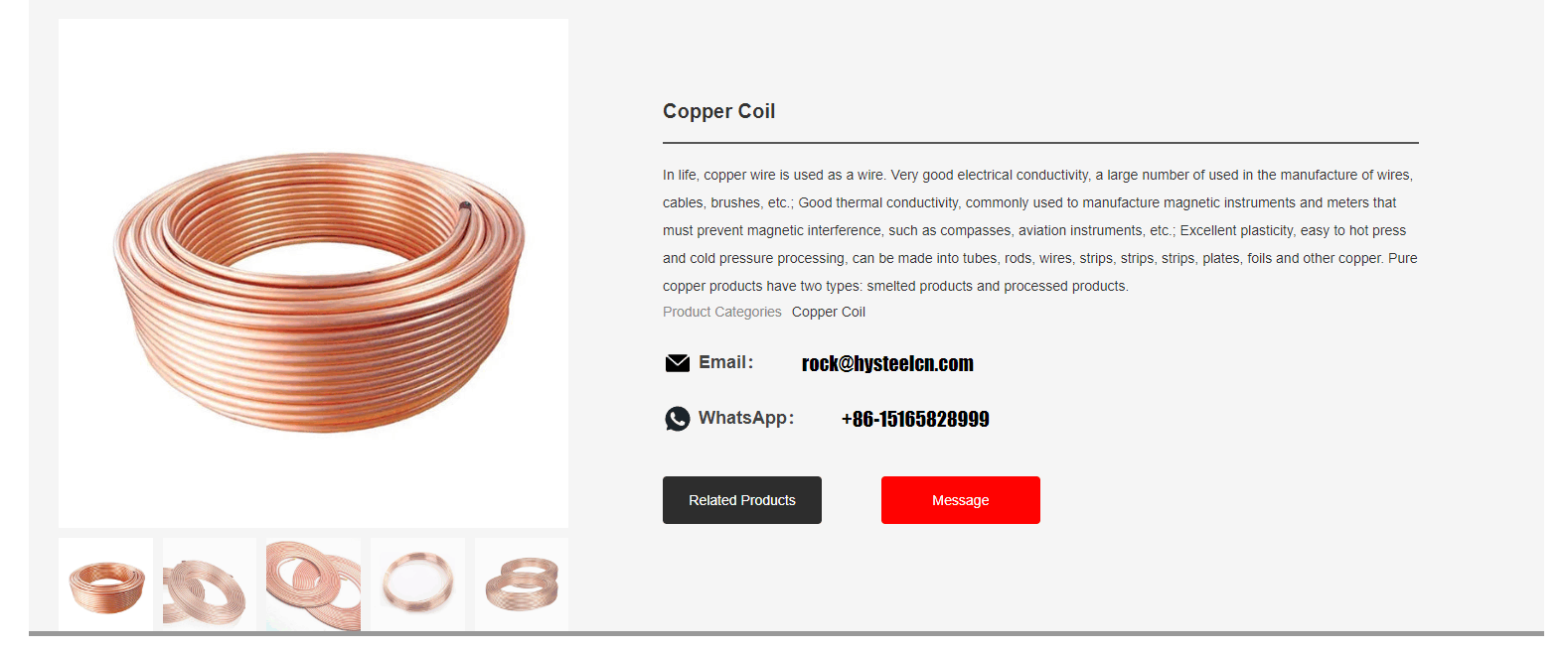 In life, copper wire is used as a wire. Very good electrical conductivity, a large number of used in the manufacture of wires, cables, brushes, etc.; Good thermal conductivity, commonly used to manufacture magnetic instruments and meters that must prevent magnetic interference, such as compasses, aviation instruments, etc.; Excellent plasticity, easy to hot press and cold pressure processing, can be made into tubes, rods, wires, strips, strips, strips, plates, foils and other copper. Pure copper products have two types: smelted products and processed products.